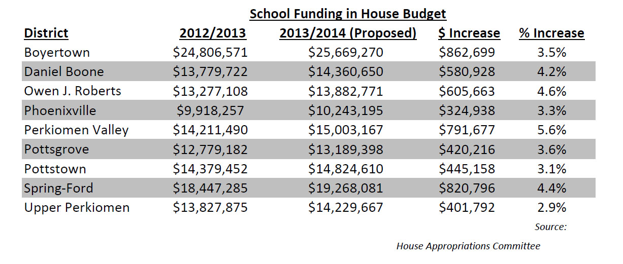 And when you look at the percentage of the increase per student under the House budget plan, notice that again, Upper Perkiomen and Pottstown share the lowest increases.